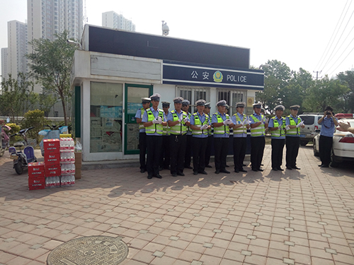 無論是寒冬的三九天還是酷夏的高溫日,他們都像一顆顆白楊挺拔的站在我們出行的路口處。霧霾嚴(yán)重的惡劣天氣、炎炎夏日的煩躁時(shí)節(jié),都有他們?yōu)槲覀兪刈o(hù)平安。在這夏至?xí)r節(jié)滄州智博信息技術(shù)有限公司自發(fā)組織了交警慰問活動(dòng),同時(shí)給五個(gè)站點(diǎn)的交警同志送去了礦泉水、冰糖雪梨、方便面、口罩等解暑物資。為滄州的交警同志送去了炎炎夏日的一絲清涼并表達(dá)了內(nèi)心的關(guān)切。